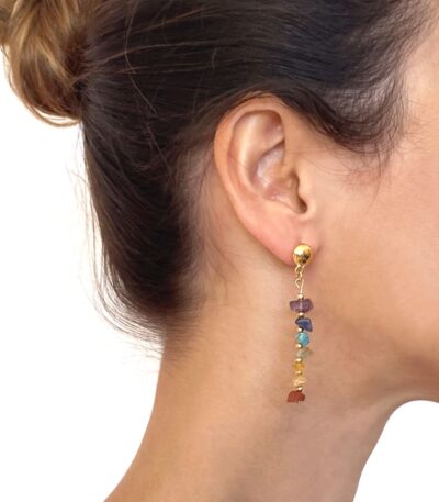 These delicate and lightweight earrings are crafted with 7 natural stones representing the seven chakras. It features gold-tone metal accents and natural stones. Prices: Landed: 24€ Exworks: 17€ Exworks: US$20