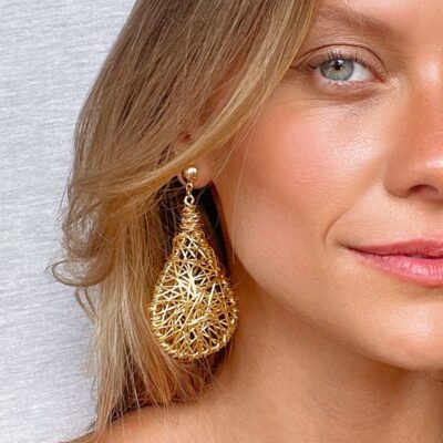 These Brir teardrop earrings are entirely hand-braided with gold-tone metal wire. It's a design full of personality, making it a super bold statement for your look. Prices: Landed: 28€ Exworks: 20€ Exworks: US$23