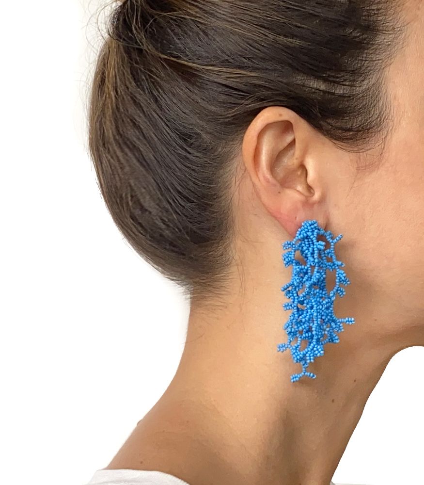 The Seaweed Earrings have been Brir’s bestsellers since 2015, making it a cornerstone of our brand’s history. These earrings are artisanally crafted using imported mini Czech glass beads, sourced from the world’s most traditional and respected bead producers. Our team of artisans meticulously hand-stitches each earring, making every piece extra special. Each artisan creates an average of two pairs per day, embedding the pin directly into the embroidery for a truly delicate finish. We are incredibly proud of this creation, with its design exclusively developed by Brir.