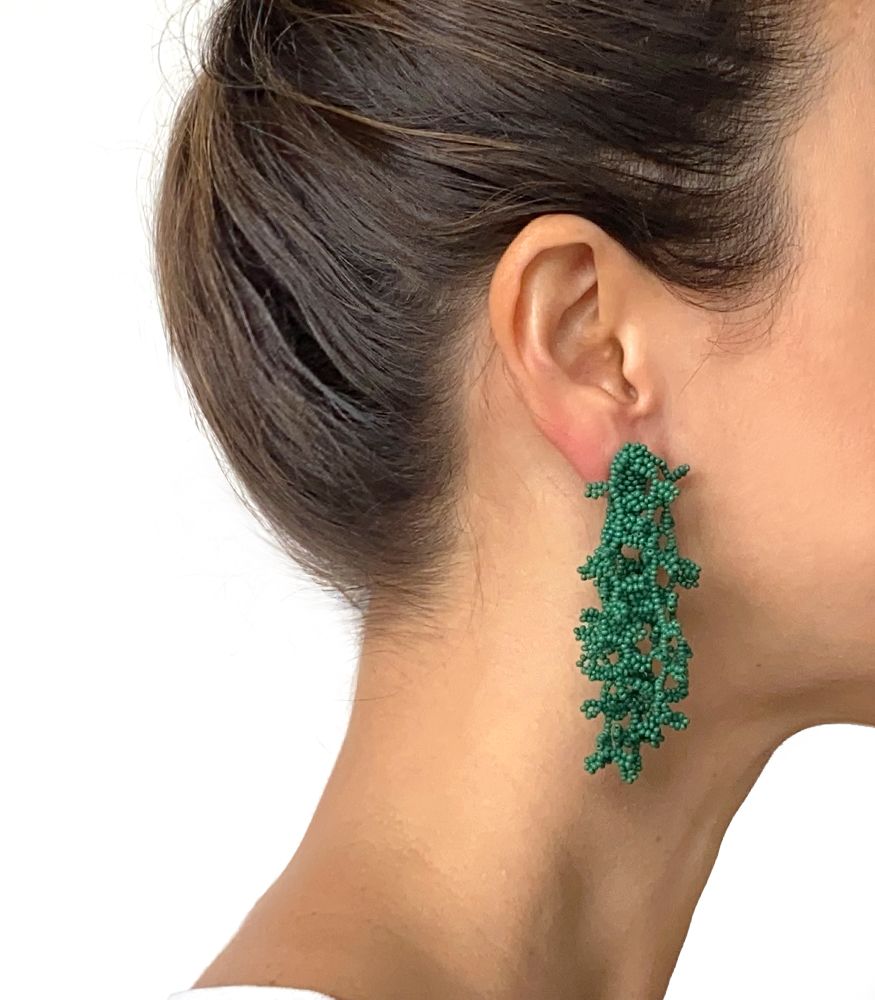 The Seaweed Earrings have been Brir’s bestsellers since 2015, making it a cornerstone of our brand’s history. These earrings are artisanally crafted using imported mini Czech glass beads, sourced from the world’s most traditional and respected bead producers. Our team of artisans meticulously hand-stitches each earring, making every piece extra special. Each artisan creates an average of two pairs per day, embedding the pin directly into the embroidery for a truly delicate finish. We are incredibly proud of this creation, with its design exclusively developed by Brir.