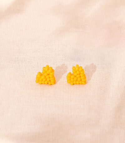 These earrings are hand-crafted by our team of artisans using mini Czech glass beads. It features a mini gold-tone metal pin applied to the back. It’s super lightweight.