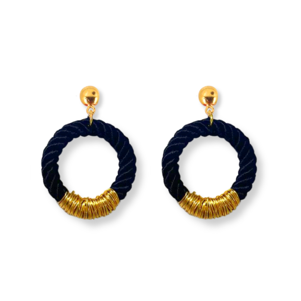 These earrings are artisanally produced using São Francisco cord ( a distinctive material, especially in Brazilian crafts). It features a central detail of hand-wrapped, twisted gold-tone wire. The earring has a gold-tone metal pin and is super lightweight. It’s a beautiful blend of cord and metallic wire.
