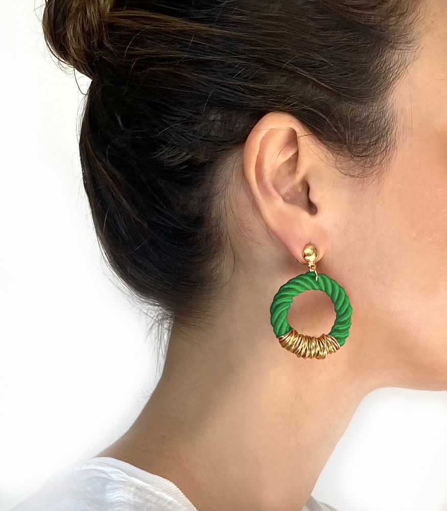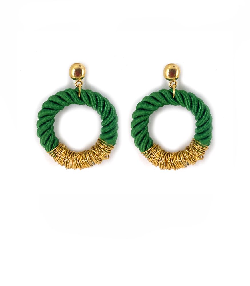 These earrings are artisanally produced using São Francisco cord ( a distinctive material, especially in Brazilian crafts). It features a central detail of hand-wrapped, twisted gold-tone wire. The earring has a gold-tone metal pin and is super lightweight. It’s a beautiful blend of cord and metallic wire.