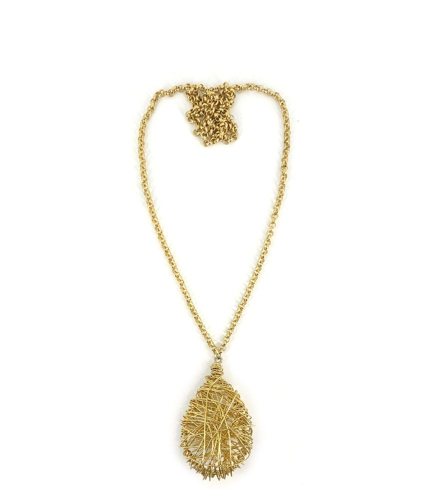 This Brir teardrop necklace is entirely hand-braided with gold-tone metal wire. It’s a design full of personality, making it a super bold statement for your look.