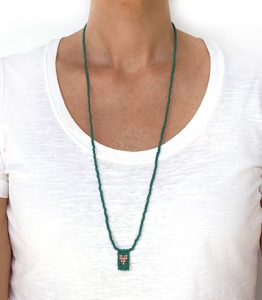 This delicate necklace is entirely hand-crafted by our team of artisans. Each piece is fully embroidered with Czech glass beads, making it truly special. It’s incredibly lightweight and delicate.